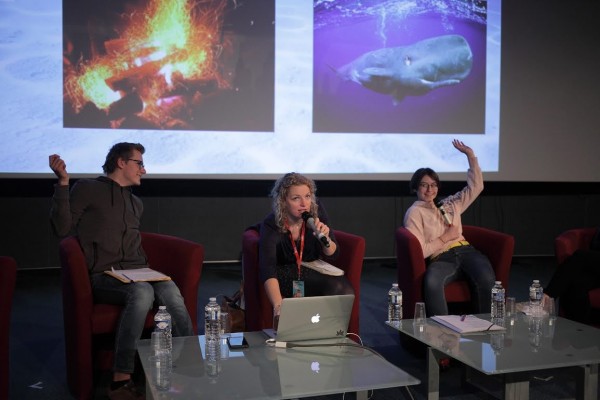Interviewée par des élèves, elle développe ce qu’est la bioacoustique et rappelle l’importance du son dans l’étude des animaux des profondeurs. Elle introduit sa méthodologie de suivi des populations, fragilisées par des siècles de chasse, et sensibilise à la problématique de la pollution sonore humaine.
