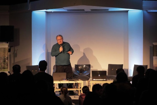 Choisissant le jeu pour leitmotiv, Fernand Deroussen propose face à un public de scolaire un quizz confectionné par ses soins. Audionaturaliste de profession, il l’a nommé : De la petite à la grande bête.