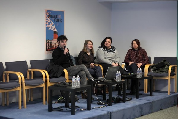 En répondant à toutes ces questions et bien d’autres, Mathilde Simon pour Longueur d’ondes, Isèle Vincent pour Radio Balises et Morgane Durrenbach de Radio U venue présenter le portrait réalisé par son collègue Pierre-Louis Leseul, elles nous éclairent sur les enjeux et les difficultés du métier de producteur radio. Face à un public lycéen, elles nous en apprennent un peu plus sur la prise de contact, la préparation d’une interview, les rencontres avec les interviewés, les intentions qui précèdent la réalisation d’un portrait radiophonique et les aléas de la prise de son… Une chose est certaine, il faut s’attendre à un « décalage avec l’intention de départ ». Que ce soit pour Mathilde qui voulait enregistrer Ewen avec son scooter mais qui au moment de la production se l’est fait confisquer, ou pour Pierre-Louis qui peine à trouver une occasion de rencontrer Solveig, très prise par ses entraînements intensifs de voile, ou encore Isèle qui désirait enregistrer un match en fauteuils électriques et qui se rend compte que le dispositif de prise de son ne convient pas, les réajustements et les adaptations de son idée à la réalité de la production radiophonique sont nombreux.