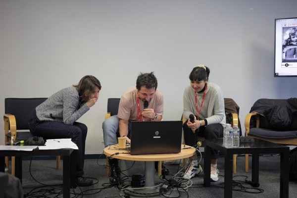 Pour cette séance, le fondateur de ce studio, Vincent Malone, était accompagné de Kenza Helal-Hocke, journaliste au Poste Général, animatrice du podcast féministe Reflets.