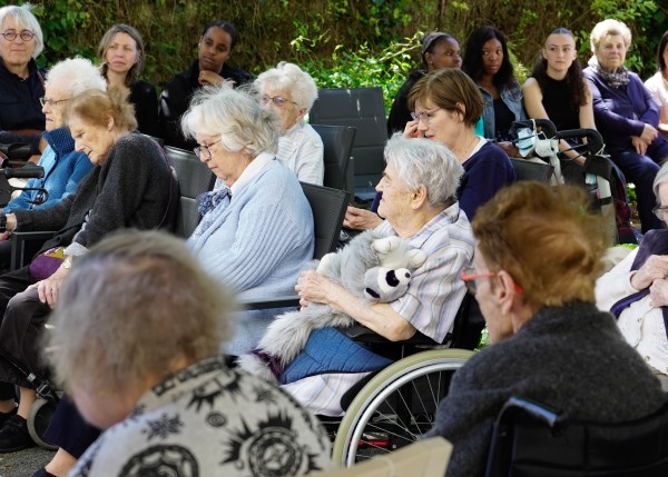 L'école d'amour est la reconduite de "Mamie fait du podcast", l'atelier radio qui avait donné lieu en 2023 à la réalisation de cartes postales sonores envoyées par les résidents à leurs proches et que l'on peut ici.